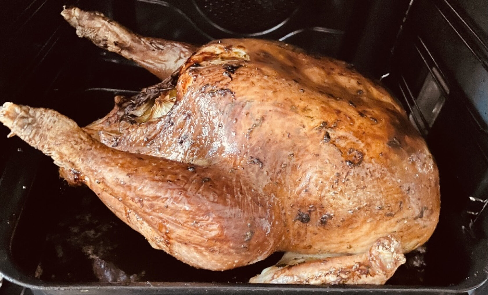 Gently separate the skin of the turkey with your hands, try no to tear it. Place the butter mixture inside the skin, carefully slide it to cover all of the surface that you managed to separate, use the rest of the butter mixture to cover the whole bird. Leave in the fridge overnight.